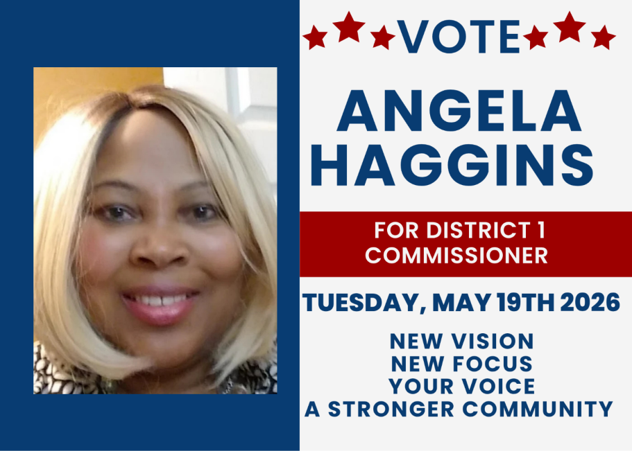 Angela Haggins brings genuine commitment to improving our local community through transparent and trustworthy governance. I am running for Tift County Commissioner for District 1. I have lived, worked and was educated in Tift County. As your Commissioner, I will provide dedicated leadership, with new vision, new focus, your voice for a stronger community.
